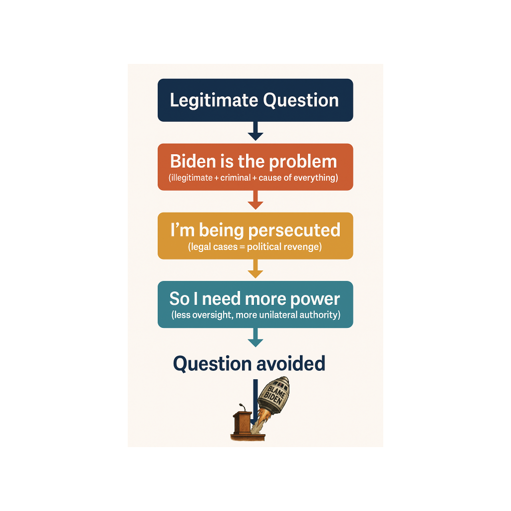 If Trump is held accountable → it’s actually Biden’s fault