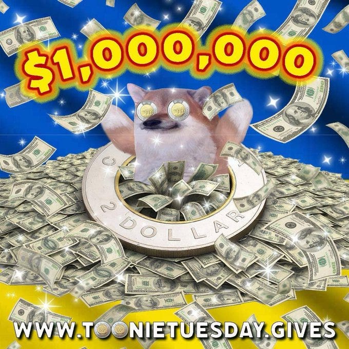 The Angry Dogs spoke to the members and volunteers about the phenomenon that is Toonie Tuesday. This week they reached $1m in micro-donations. An astonishing feat for a purely volunteer driven team. No NGO, no government backing - just brain damaged cartoon dogs.
