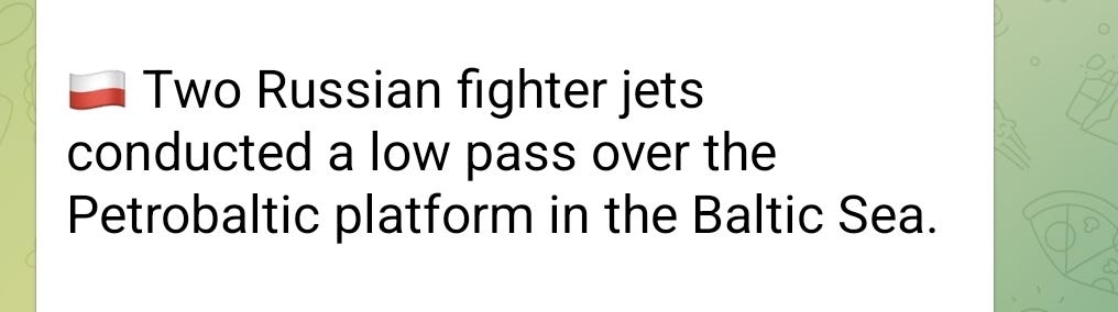 INPUT: “Two Russian fighter jets conducted a low pass over the Petrobaltic platform (Baltic Sea).”